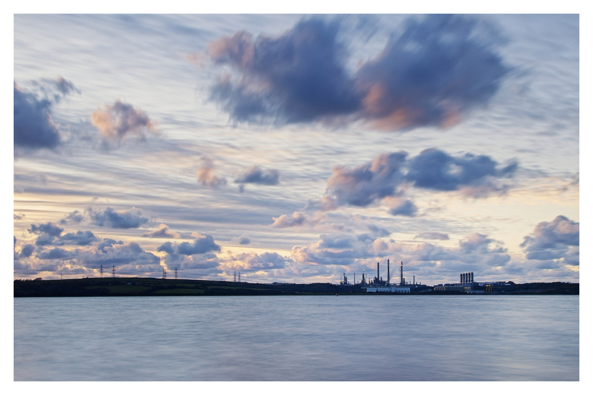 Pembroke Refinery and Power Station sits on an exposed part of the Welsh Coast. The regular storms that roll in off the Irish sea form a dramatic backdrop against the concrete chimneys' and steel exhaust towers that protrude into the sky. Once a year, the sun also sets directly behind the refinery, an event I always try and capture. All of these photographs were captured at sunset.